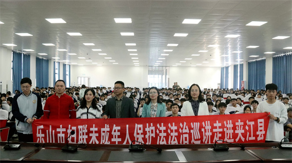为深入贯彻落实《中华人民共和国未成年人保护法》《预防未成年人犯罪法》,切实增强未成年人的法律意识与自我保护能力,2026年4月17日下午,由乐山市妇联主办、夹江县妇联承办、乐山市悦享家庭教育指导中心协办的“预防未成年人犯罪·对校园欺凌说不”法治巡讲活动走进云吟职中,为全校400余名学生带来一堂生动而深刻的法治教育课。