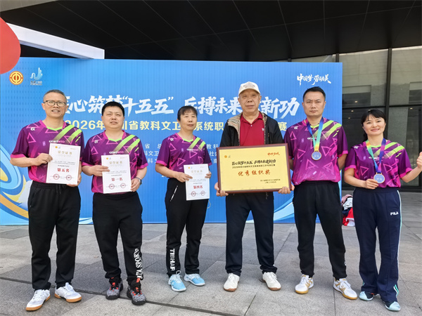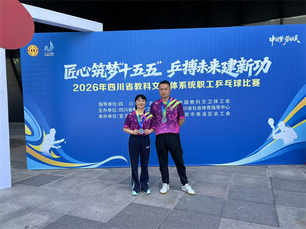 4月15日—17日,郑希老师再接再厉,在四川省教科文卫体系统职工乒乓球比赛中,与搭档默契配合,一举夺得中年组混合双打第一名。