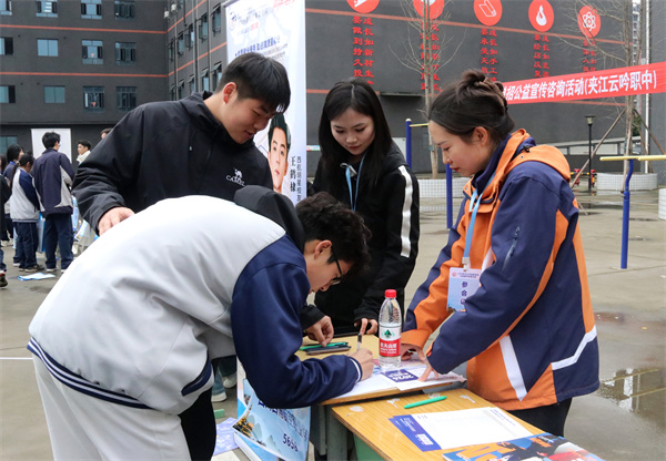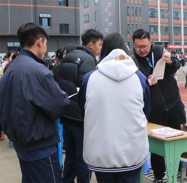 本次活动以“公益护航,圆梦单招”为主题,旨在帮助广大考生科学规划升学路径,全面了解高职单招政策,精准选择院校和专业。作为本次活动的宣传点位之一,我校高度重视,精心组织,普高部与职高部两部高三学生约800人积极参与,现场气氛热烈,秩序井然。
