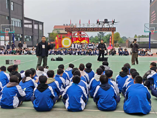 随后,夹江羽翼科技发展有限公司负责人李可为同学们带来了一场生动而专业的无人机知识讲座。他从无人机的分类入手,深入浅出地讲解了无人机技术在日常航拍、农业植保、测绘勘察、应急救援等多个领域的广泛应用,让同学们深刻感受到科技如何改变生活与工作。此外,李总还就无人机驾驶执照的考取流程及其在升学、就业方面的价值进行了介绍,为有相关兴趣的同学指明了未来的职业发展方向。讲座过程中,同学们全神贯注,积极互动,现场气氛热烈。