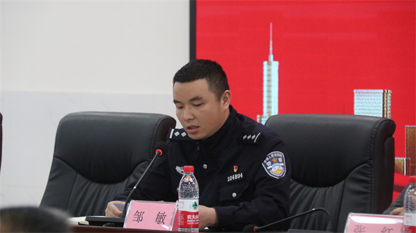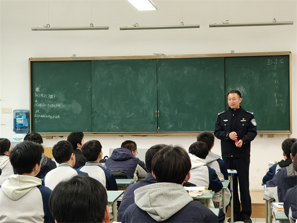 随后,民警邹敏代表全体法治班主任讲话。他说,夹江县公安局选派民警到学校担任法治班主任,旨在创新未成年人保护机制,打通校园安全“最后一米”。法治班主任将重点围绕法治教育、行为矫治、关爱服务三方面展开:通过普法宣传增强学生法治意识;通过跟踪帮教预防未成年人违法犯罪;通过关爱帮扶与安全整治守护学生成长。警校携手,共建平安校园。