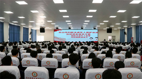 为深入贯彻落实《中华人民共和国未成年人保护法》《预防未成年人犯罪法》,切实增强未成年人的法律意识与自我保护能力,2026年4月17日下午,由乐山市妇联主办、夹江县妇联承办、乐山市悦享家庭教育指导中心协办的“预防未成年人犯罪·对校园欺凌说不”法治巡讲活动走进云吟职中,为全校400余名学生带来一堂生动而深刻的法治教育课。